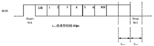 此時約過3ms,SCIO開始輸出數據,第一個Byte即為STARTByte,總共輸出14Bytes數據。見圖6.