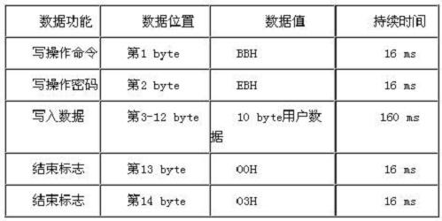 要將用戶數據寫入RFM001射頻卡,必須遵循下列格式。