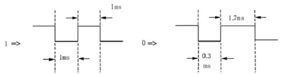 每個Byte的格式如圖3,由10bits組成,第一個bit是STARTbit固定為HI,最後一個bit是Stopbit固定為LOW,第2-9bit實際發送的數據(最先收到的bit為LSB),由於是負邏輯數據需要反相處理(LOW=1、HI=0).