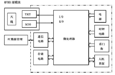 射頻識別係統主要硬件組成是由單片微處理器構成射頻信號的解碼模塊,其主要構成如下框圖,其中通過RS232串行通訊將數據交給PC機進行處理。