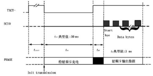 以下給出基站讀取數據的時序(如圖2),由射頻卡發出的數據采用FSK調製。