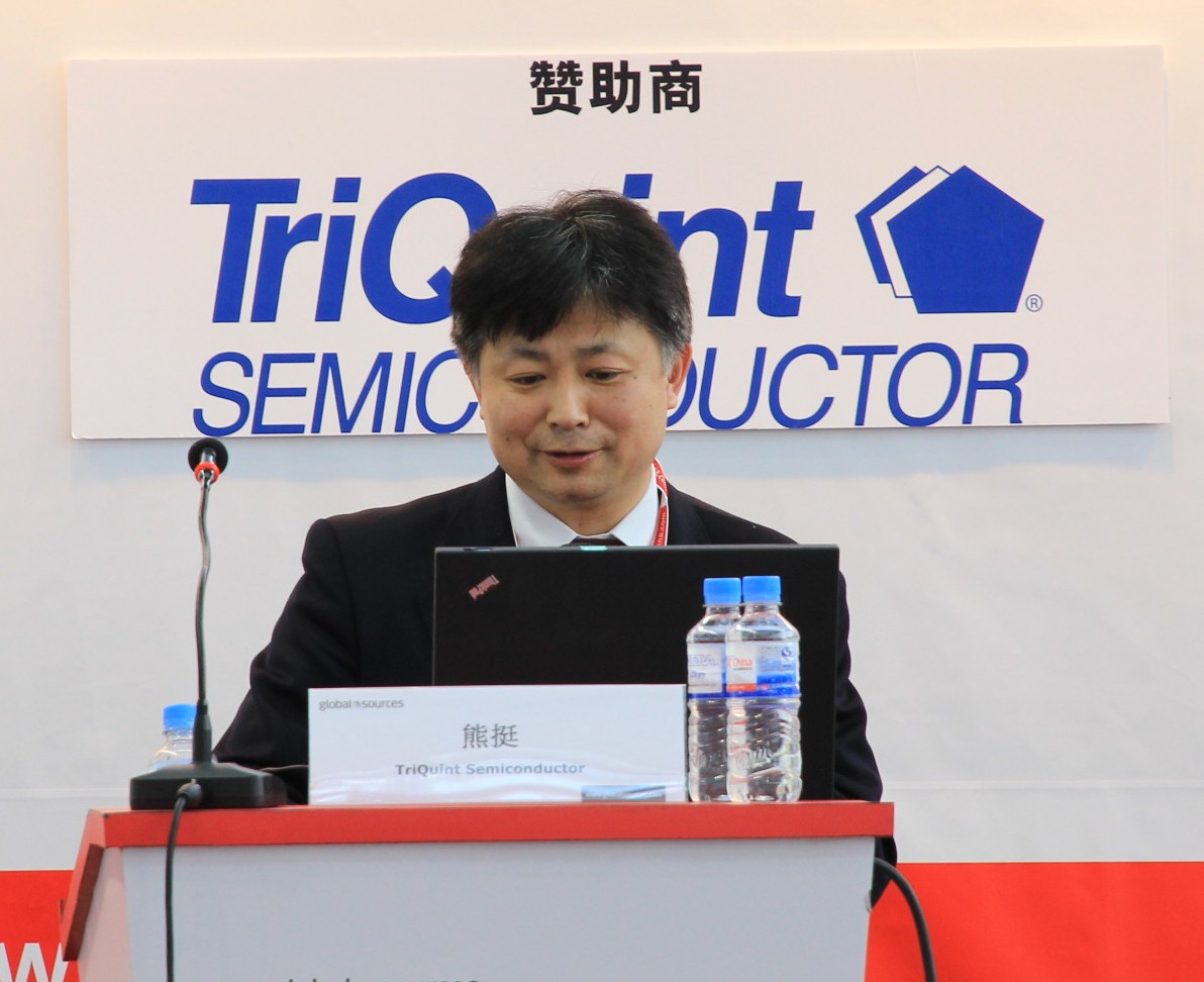 熊總表示,從公司的角度來看,TriQuint從原來生產單一器件轉型為客戶提供整體解決方案,TriQuint的解決方案幫助客戶提高產品性能,降低成本,同時使客戶的設計周期縮短,運用更少的物料清單。TriQuint同其他競爭對手相比,TriQuint不僅擁有有源和無源的射頻技術,更能利用TriQuint先進的生產工藝進行集成,縮小射頻解決方案的尺寸,提供更低的電流和更高的效率,這就是TriQuint的核心競爭力。