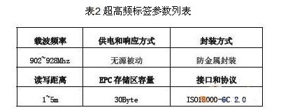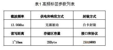 應用方案中共涉及到高頻(13.56MHz)超高頻(915MHz)兩種不同類型的RFID標簽,所選擇的RFID標簽規格如表1、表2 所示。