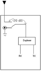 衰減值大小因設計而變化。由於通過天線泄漏的信號是經由空氣傳播,其傳播衰減可用Friis轉換方程計算: