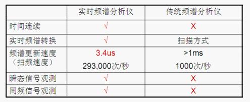 圖3: 實時頻譜分析儀和傳統頻譜分析儀的區別。