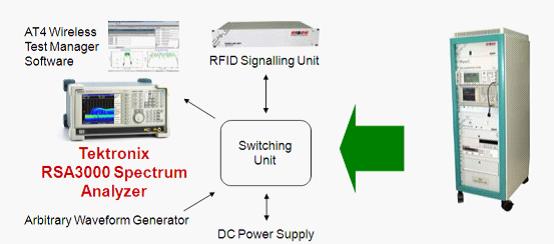 圖6:基於泰克實時信號分析儀的RFID認證測試係統。