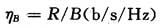 頻譜效率ηB又稱頻帶利用率,用來衡量通信係統的有效性。它定義為單位帶寬傳輸頻道上每秒可傳輸的比特數,單位是b/s/Hz。對於發送與接收係統的濾波器頻帶,取傳輸信道(含發送、接收濾波器)帶寬,即-20 dB帶寬。若傳輸信道的帶寬為B,數據傳輸率為R。則: