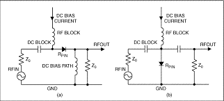 PIN二極管衰減器可采用串聯或並聯配置結構。串聯衰減器(圖2a)通常需要二極管的電流為10mA至20mA。其衰減量為: