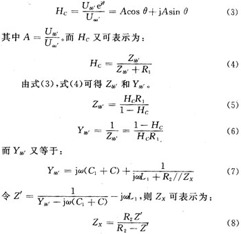 其中,Uaa′,Ubb′為aa′和bb′處的電壓的有效值,θ為aa′和拍bb′處電壓的相位差。隻要測出Uaa′,Ubb′和θ就可得到傳輸函數HC,由於HA,HB為已知線性網絡,通過計算就可求得待測阻抗ZX。
