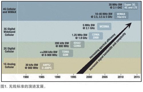為wei了le解jie決jue這zhe一yi問wen題ti,無wu線xian提ti供gong商shang轉zhuan而er采cai用yong了le可ke提ti高gao頻pin譜pu效xiao率lv的de無wu線xian標biao準zhun。這zhe類lei似si於yu將jiang多duo輛liang駛shi往wang同tong一yi目mu的de地di的de轎jiao車che碼ma放fang在zai一yi輛liang卡ka車che上shang,並bing將jiang卡ka車che沿yan著zhe高gao速su公gong路lu開kai往wang目mu的de地di。這zhe種zhong方fang法fa使shi相xiang同tong的de高gao速su公gong路lu上shang可ke以yi實shi現xian更geng多duo的de數shu據ju傳chuan輸shu流liu量liang,而er不bu會hui導dao致zhi流liu量liang降jiang低di。為wei了le提ti高gao頻pin譜pu效xiao率lv,我wo們men可ke部bu署shu或huo定ding義yi所suo有you的de無wu線xian標biao準zhun,其qi中zhong包bao括kuoCDMA2000、W-CDMA、TD-SCDMA、MC-GSM、WiMAX以及LTE等。圖1顯示了近年來用於提高頻譜效率所部署或定義的無線標準。