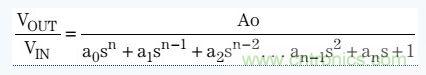 巴特沃茲濾波器傳輸函數包括所有極點,並且沒有零,其表達式如下:
