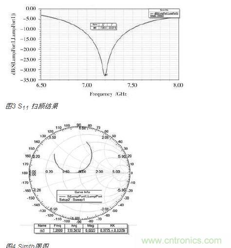 通過HFSS對初始值的仿真可知,當前的初始值並沒有完全使天線達到7.2 GHz,且此時天線的各項性能指標也達不到要求。那麼,需要用到HFSS的掃頻分析和優化設計功能來優化天線的各項參數,使引信天線的性能達到最佳。