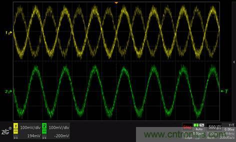 圖3 CH1不開啟高頻抑製觸發不穩,CH2開啟高頻抑製