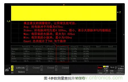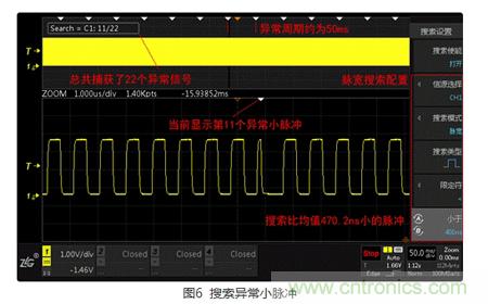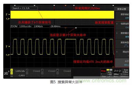 ZDS2000示波器提供了觸發、測量、搜索、FFT等多種強大功能,但異常信號的不確定性非常大,實際應用中,還是應視具體情況,靈活組合運用,才能最大程度的提高工作效率。