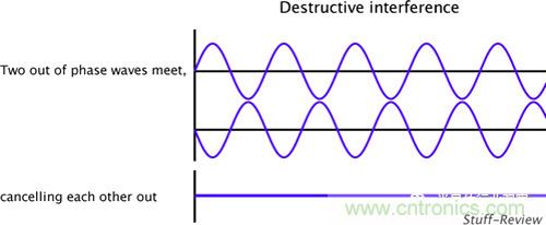 ANC技ji術shu的de原yuan理li並bing不bu深shen奧ao,高gao中zhong物wu理li就jiu教jiao過guo,就jiu是shi波bo的de幹gan涉she。如ru果guo大da家jia對dui高gao考kao複fu習xi還hai記ji憶yi猶you新xin的de話hua,一yi定ding還hai記ji得de如ru果guo兩liang列lie波bo幅fu度du相xiang同tong,相xiang位wei相xiang反fan,則ze它ta們men幹gan涉she的de結jie果guo是shi互hu相xiang抵di消xiao,看kan不bu到dao波bo了le!