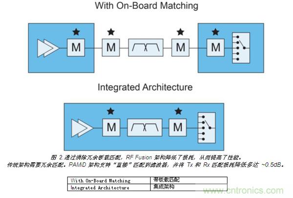 如圖 2 所示,每條通道上實現元件集成,無需對元件進行板載匹配,從而提升了性能。這將發射和接收的匹配損耗降低多達 0.5 dB,進jin而er降jiang低di電dian流liu消xiao耗hao和he熱re負fu荷he。這zhe種zhong布bu局ju還hai在zai功gong率lv放fang大da器qi的de帶dai寬kuan範fan圍wei內nei集ji成cheng相xiang應ying頻pin段duan的de濾lv波bo器qi,確que保bao了le每mei個ge功gong率lv放fang大da器qi能neng得de到dao最zui高gao效xiao的de利li用yong。每mei個ge模mo塊kuai的de改gai進jin性xing能neng使shi製zhi造zao商shang更geng容rong易yi實shi現xian手shou機ji的de整zheng體ti性xing能neng目mu標biao。