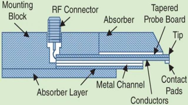 EM場分布圖的轉換是由處於單個探針組裝內的若幹個射頻過渡措施來維持的。一個傳統的射頻探針是由下列幾個部分組成的: