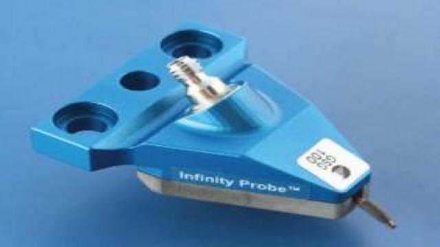 隨著對MOS和BICMOS器件的射頻特性及縮小DUT接觸點尺寸不斷增長的需求, CascadeMicrotech公司在2002年的第59屆春季自動射頻技術組織(AutomaTIc RF Techniques Group-ARFTG)微波測量大會上介紹了基於薄膜技術的新的圓晶探針。這個方法是基於Cascade公司的Pyramid Probe Card 技術。在一個柔軟的聚酰亞胺薄膜基片上的微帶線從同軸線通過非氧化稀有金屬探針極尖向DUT傳輸信號。Ni探針極尖的接觸麵積大約為12μm x12 μm,從而可以探測極小的接觸壓點。這個新型的Infinity 探針展示了卓越的接觸的一致性和探針-到-探針的很低的串擾。
