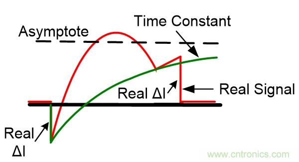 圖6xianshileruguozaimubiaodianlutongyiweizhidedianliujiancedianzushangzhakan,shijixinhaoshiruheanyuqichuxiande。jinguanneixinlixiangyirenhejingducongxianshixinhaozhongjianqushijianchangshu,danzhezaishuxueshangbuqieshiji。yinci,guanyuxianshikexindudechenshuyudianliuzhuanhuanxiangqushenyuan。dangran,yekeyihuadajiaqianmaiyigecixing“DC”電流探頭幫你做上述數學計算,但是帶寬太低。