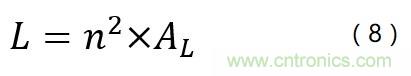使用下麵的公式來計算已知磁芯和匝數的電感值。該計算針對初級電感(1個繞組和1個磁芯),沒有從磁芯其它繞組反射任何負載,例如在一個互感器內(> 1個繞組和1個磁芯)。
