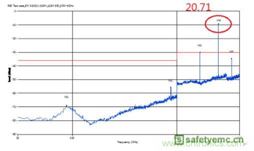 圖1 調試前輻射雜散測試結果