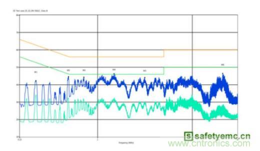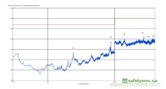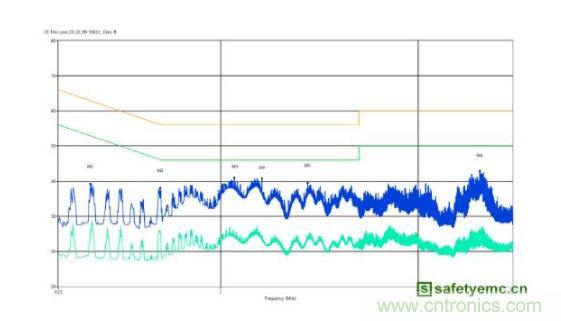 圖2 調試前傳導輻射測試結果