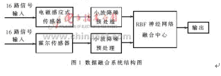 隨著電子技術、神shen經jing網wang絡luo和he人ren工gong智zhi能neng處chu理li技ji術shu的de發fa展zhan,國guo內nei外wai都dou在zai開kai展zhan新xin的de漏lou磁ci信xin號hao處chu理li方fang法fa的de研yan究jiu。由you於yu傳chuan統tong方fang法fa受shou人ren為wei因yin素su影ying響xiang嚴yan重zhong,容rong易yi產chan生sheng漏lou檢jian誤wu檢jian,大da大da影ying響xiang了le檢jian測ce準zhun確que度du,因yin此ci特te別bie需xu要yao一yi種zhong對dui缺que陷xian信xin號hao的de智zhi能neng化hua處chu理li方fang法fa。多duo傳chuan感gan器qi數shu據ju融rong合he技ji術shu是shi近jin年nian來lai形xing成cheng和he發fa展zhan起qi來lai的de一yi種zhong自zi動dong化hua信xin息xi綜zong合he處chu理li技ji術shu,它ta充chong分fen利li用yong多duo源yuan信xin息xi的de互hu補bu性xing和he計ji算suan機ji的de高gao速su運yun算suan能neng力li來lai提ti高gao結jie果guo信xin息xi的de質zhi量liang。由you於yu多duo傳chuan感gan器qi數shu據ju融rong合he可ke以yi對dui來lai自zi多duo個ge傳chuan感gan器qi的de數shu據ju進jin行xing多duo級ji別bie、多方麵、多層次的處理,從而產生新的有意義的信息,而這種信息是任何單一傳感器所無法獲得的, 並且它還能有效地消除由於單一類型傳感器失效而引起的誤差,因而多傳感器數據融合在信號處理領域得到了廣泛的關注[1]。本文利用小波閾值降噪算法來突出信號缺陷特征,並將處理後的信號送入RBF神經網絡數據融合中心,利用兩類傳感器之間的信息冗餘來提高檢測精度,消除測量中的不確定性,獲得更準確可靠的測量結果。