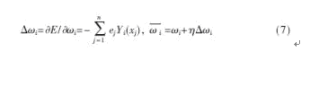 本文利用梯度下降算法確定連接權值。假設總誤差為:
