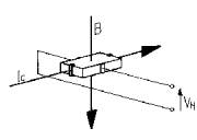 HX傳感器的核心是一個霍爾效應發生器。1879年,Edward H. Hall發現了霍爾效應,在電流流經一片薄傳導材料(霍爾發生器),並放在正交磁場中時,會發生這種效應。然後電磁洛倫茲力將感應電子,根據極性流到薄片邊緣。