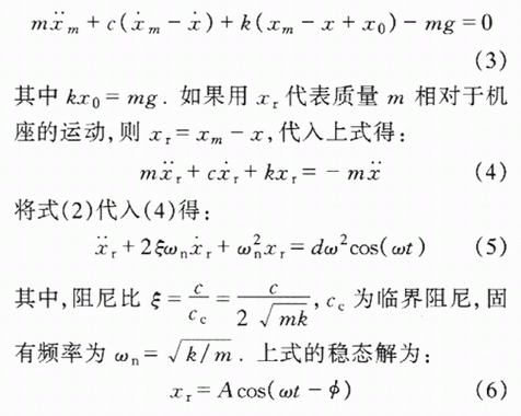 式中,ω為振動的角頻率,d為振動的幅值.由牛頓定律,該振動係統的微分方程可寫為: