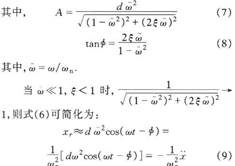 可見質量塊m相對於機座的位移xr與機座的加速度成正比.此時可以通過測量質量塊的位移變化來測量振動的加速度.