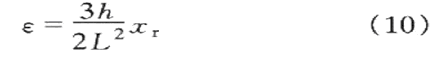 在圖1中懸臂梁相當於振動力學模型中的彈簧,其長為L,寬為b,厚為h.光纖光柵粘貼在懸臂梁的上表麵,並粘貼在固定端附近,這樣有利於提高應變靈敏度.質量塊受到振動時,在慣性力的作用下懸臂梁自由端產生的撓度為xr,由此引起固定端附近的光纖光柵應變為: