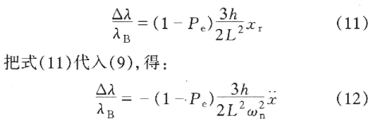 可見光柵的應變ε與質量塊相對於機座的位移xr之間成線性關係.另外,根據式(1),光纖光柵的布拉格波長變化與位移xr間的關係為: