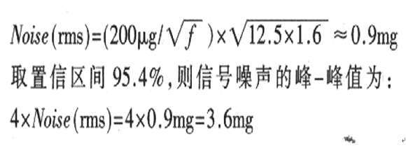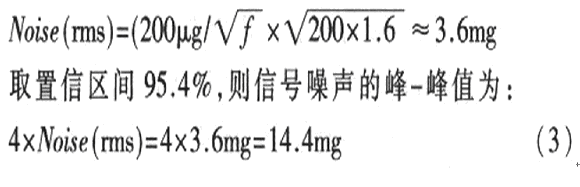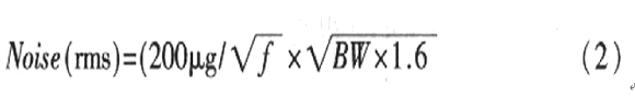傾斜角度測量值通過XOUT、YOUT端口輸出的數字信號得到。由於經XFILT、YFILT端口的電容低通濾波,信號帶寬為200Hz.則根據ADXl202的噪聲計算公式為: