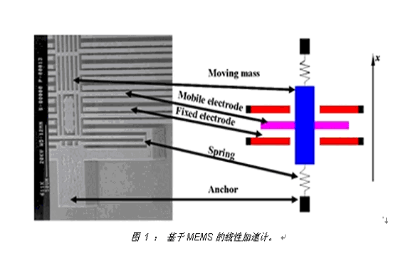 圖 1 : 基於MEMS的線性加速計。