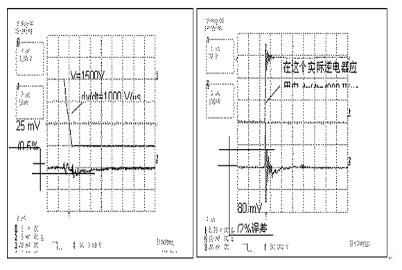 開關設備每次開關時產生的高dv/dt值將在主電纜和傳感器的電子電路之間產生電容電流。大多數模擬線性放大器對這種寄生電流很靈敏。因此,dv/dt噪(zao)聲(sheng)將(jiang)被(bei)疊(die)加(jia)在(zai)輸(shu)出(chu)信(xin)號(hao)上(shang)。根(gen)據(ju)變(bian)動(dong)電(dian)壓(ya)的(de)幅(fu)度(du)和(he)斜(xie)坡(po),初(chu)始(shi)尖(jian)峰(feng)和(he)後(hou)來(lai)的(de)振(zhen)蕩(dang)有(you)時(shi)會(hui)非(fei)常(chang)高(gao),以(yi)致(zhi)它(ta)們(men)會(hui)激(ji)活(huo)傳(chuan)感(gan)器(qi)的(de)電(dian)流(liu)保(bao)護(hu)電(dian)路(lu),進(jin)而(er)使(shi)逆(ni)電(dian)器(qi)暫(zan)停(ting)運(yun)轉(zhuan)。LEM的經驗在HX係列設計階段幫助保證了對關鍵噪聲的完美免疫力,而又不會損害帶寬,因此HX的性能要超過其它類似的傳感器(圖2和圖3)。