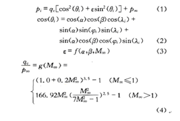 FADS係統的空氣動力學模型把位流模型與修正的牛頓流模型(前者主要適用於亞音速條件,後者主要適用於超音速條件)與一個修正係數ε相結合,形成了不同馬赫情況下的帶補償的空氣動力學模型。ε的數值是在綜合考慮了壓縮效應、氣動外形、係統影響等因素而選取的。在飛行中,可以將其看成攻角、側滑角和馬赫數的函數,其函數關係可以在飛行前確定。