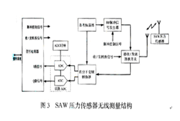 在嵌入式大氣數據係統中,SAW壓力傳感器無線測量的優點可提高其應用的靈活性。圖3所示為SAW壓力傳感器無線測量結構。