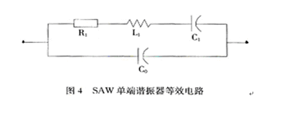 可通過SAW單端諧振器的等效電路對SAW壓力傳感器的整體性能進行分析,圖4為SAW單端諧振器的等效電路。