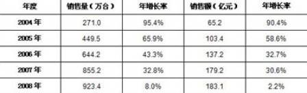 表1 2004-2008年中國數碼相機市場銷售情況