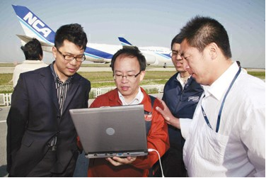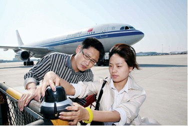 圖4:在浦東機場測試3G信號,電信工作人員仔細核對