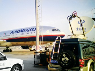 圖2:中國電信上海公司緊急在浦東機場遠機位安裝3G無線全球眼