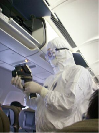 2009年4月29日晨5點58分,甲型H1N1流感擴散以來首架抵達中國的墨西哥航班AM098航班降落於浦東機場。旅客下機之前,檢驗檢疫人員身穿防護服,手持德圖精密型紅外測溫儀testo845,登機對所有乘客進行體溫檢測。