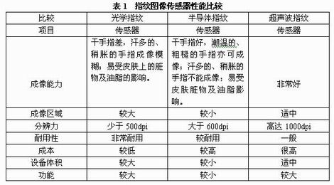3種指紋圖像傳感器各有優缺點,如表1所示。