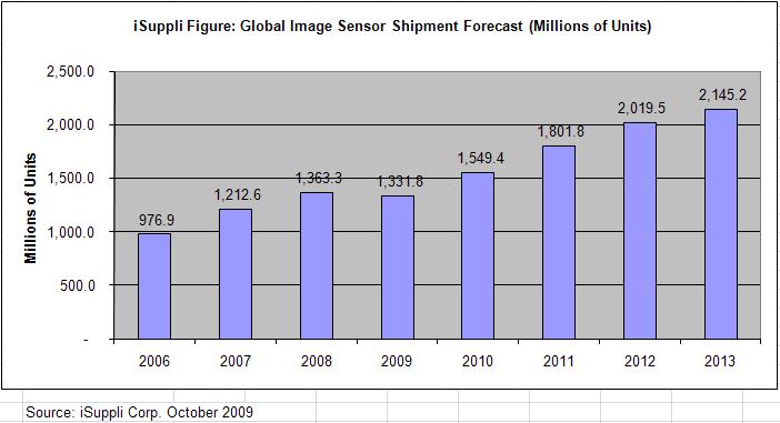 iSuppli預測2009年,13億顆影像傳感器被運往世界各地,而2012年,市場出貨量將跨越20億顆的門檻。