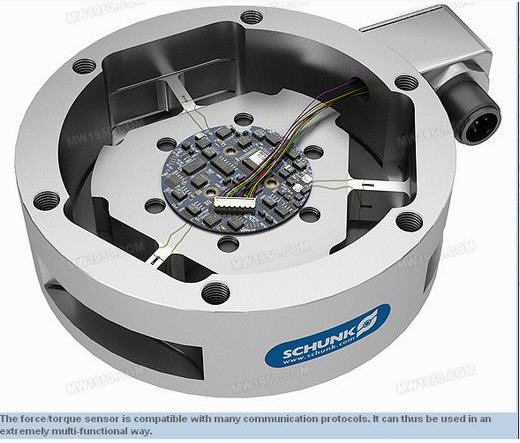 該傳感器可以在六個自由度內測量力和扭矩。信號可通過以太網或CAN以高達7000赫茲的頻率高速輸出。FTNet因此也可以實現高動態控製概念的實施。對於遠程監控,傳感器可以直接連接到LAN。該係統可以配置設置,通過網絡界麵進行調整和顯示。此外,演示軟件提供了實時的六軸測量的圖形視圖。為了確保可靠的操作,FTNet有電纜破損檢測裝置,過載保護裝置和溫度補償。該係統由一個傳感器,防護罩和機器人電纜兼容設備網及一個以太網和DeviceNet / CAN總線接口組成。
