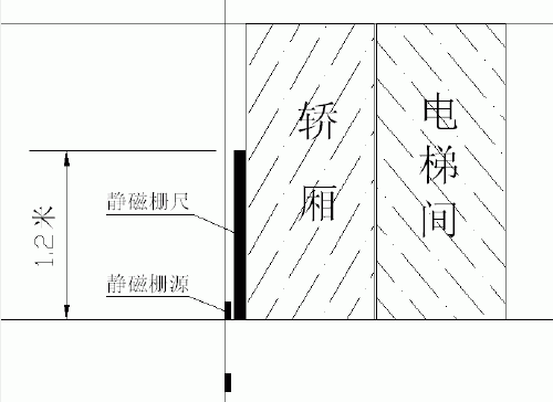 要使電梯到達平層區域後能自動平層,必須有一套自動控製係統,即電梯的自動控製裝置。該裝置的控製部分是靜磁柵位移傳感器,以30層電梯為例,安裝圖如下圖所示。
