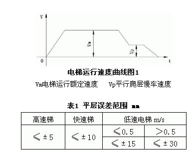 根據電梯運行的特點及以上要求,電梯的運行速度應當符合圖1所示曲線。平層誤差應符合表1規定。