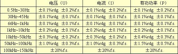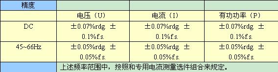 輸入:正弦波輸入、功率因數1、對地間電壓0V、和電流傳感器一起在23℃±3℃下調零後滿足基波為同步源的條件範圍內時
