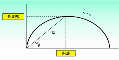 常用的方法是將產生的阻抗與頻率的關係曲線作為數據分析的一部分。當頻率在給定的範圍內掃頻時,奈奎斯特(Nyquist)圖是在複數平麵內以傳遞函數的實部和虛部為參數的曲線。如果圖中的x軸表示實部,y軸表示虛部(注意:y軸取負數),就可以得到每個頻率點的阻抗表示。換句話說就是,曲線上的每個點都代表了某個頻率點的阻抗。可以從向量長度|Z|和該向量與x軸之間的夾角?計算出阻抗。圖1為電阻器和電容器並聯時的典型奈奎斯曲線。